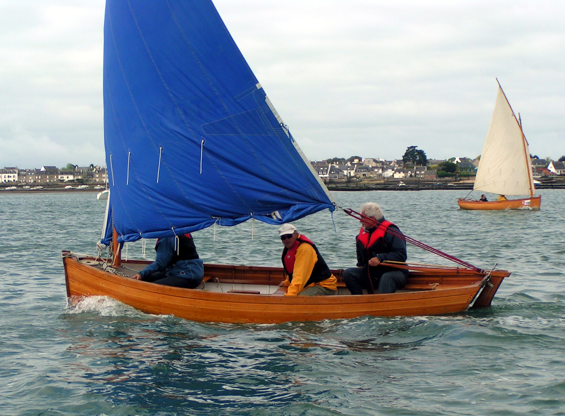 Ses formes sont inspirées des canots traditionnels bretons, avec une étrave verticale, une quête de tableau assez marquée. Le gréement de misainier est le plus simple que l’on puisse imaginer. Au virement de bord, il suffit de passer l’écoute d’un bord à l’autre et de border à nouveau.