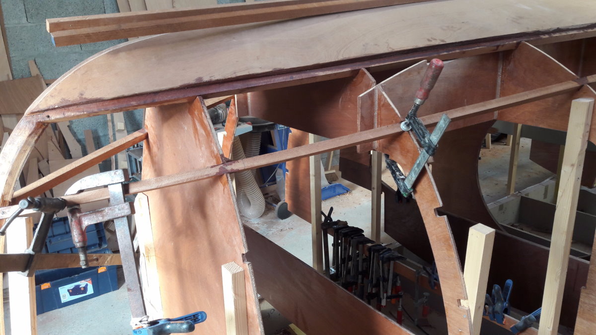 Le Méaban, voilier de croisière côtière transportable rencontre toujours un grand succès en construction amateur avec 22 unités construites ou en construction. Gaëtan Loridant, tient un blog de la construction de son Méaban construit en bois moulé de contreplaqué sur la base d’un kit acheté au chantier Grand-Largue. Mise à l’eau prévue en 2020, pour un temps passé estimé à 2000 heures.