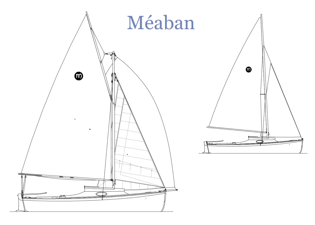 Méaban est un bateau de plaisance traditionnelle ayant la taille maximale pour être transportable sur remorque et mis à l’eau à partir d’une cale inclinée. On a cherché à associer de façon séduisante le charme d’une coque et d’un gréement classique, avec une étrave verticale et de belles hiloires en bois verni, et les exigences du monde d’aujourd’hui. En fait nous avons repris le programme du célèbre Bélouga de l’architecte Eugène Cornu, mais en plus habitable et plus marin. Le saumon-lest et la dérive pivotant sous le cockpit permettent de concilier l’avantage du dériveur quasi-intégral, sans l’encombrement d’un puits de dérive dans la cabine. Méaban est un bateau idéal pour visiter les petits ports et y béquiller tranquille. Les béquilles se rangent sous le cockpit.