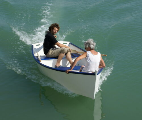 Sorine canot est une « plate », bateau d’une grande simplicité qui pourtant ne manque pas d’élégance et d’harmonie avec ses volumes parfaitement équilibrés. Le fond plat lui donne une excellente stabilité qui en fait un bateau à tout faire et en particulier bien adapté à la pêche en mer ou en rivière. Il est destiné à être propulsé aussi bien au moteur ou à l’aviron. Les bancs ont été disposés pour lui permettre de naviguer en toutes circonstances avec une assiette proche de l’horizontale, quel que soit le nombre de personnes à bord. Le banc du barreur est avancé à cette fin et il est conseillé d’utiliser une allonge de barre.